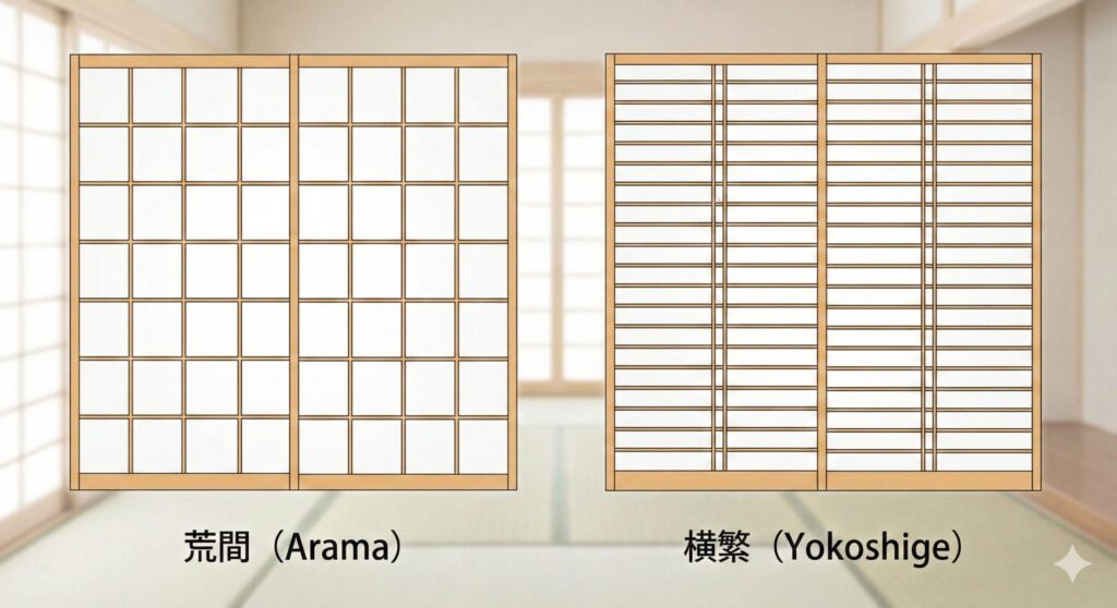 ★リフォーム・交換のおすすめ: 迷わず**「荒間(あらま)」**を選びましょう。 「普通の障子が欲しい」とオーダーされる場合、ほぼ100%この荒間障子のことを指しています。コストも最も抑えられます。