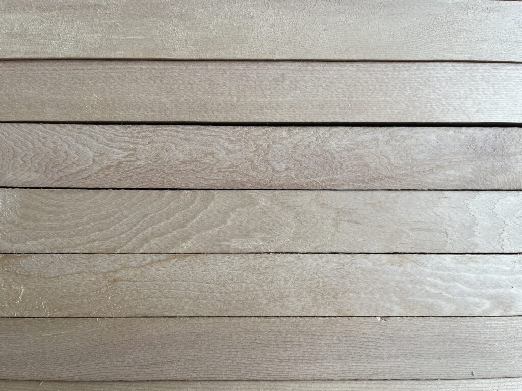 • 色と木目: 全体的に淡い黄白色から白色で、清潔感のある美しい色合いです。木目はきわめて真っ直ぐ(通直)で、肌目も緻密できれいです。